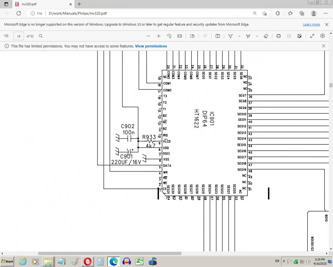 Намерих сервизното описание и там има един резистор R933 , които управлява контраста на дисплея. Само че не е тример, а 4.7К SMD. Между плюса и минуса на С901 свървам тример 10К и от плъзгача през 3К подавам напрежение към VLCD на чипа HT1622. С регулиране максимума който постигам е от изчезване на знаците до завареното положение, т.е  пак не се появява подсветката.https://forum.setcombg.com/attachmen...id=42729&stc=1