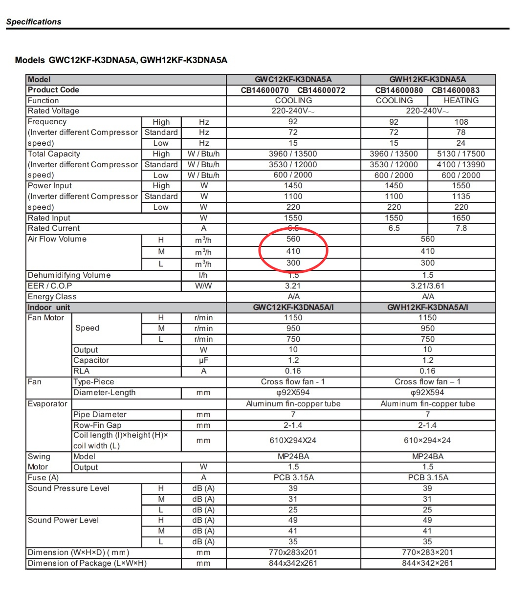 Gree 12 air conditioning H fan 600 m3