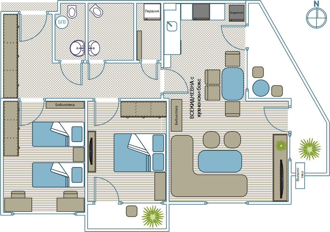 всекидневна с кухненски бокс