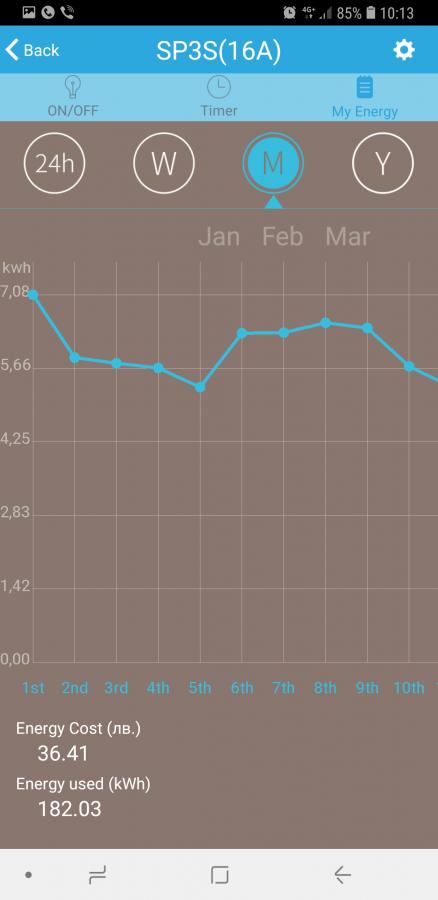 П.П. Проблема с енерджи монитора на приложението  броадлинк остава. След затваряне на приложението и последващо отваряне, наново трябва да се повтори цялата процедура с забравената парола, получаване на верификационен код, въвеждането му и наново въвеждане на пароли, за да се покажат графиките с консумацията.
