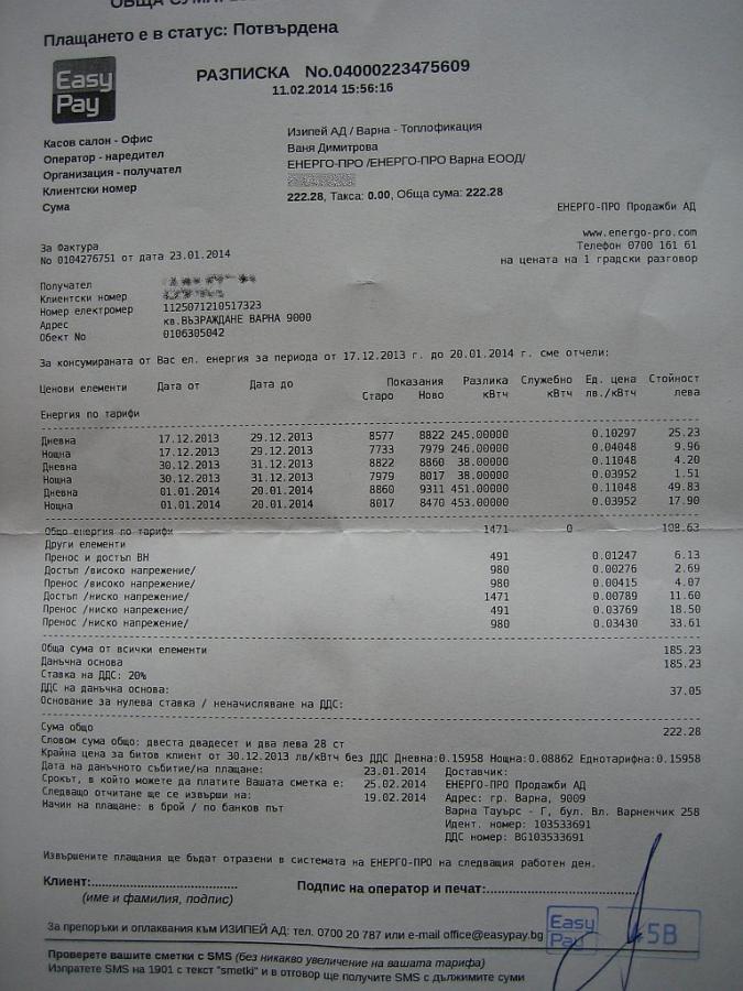 Питам, защото ние сме четиричленно семейство и сметката ми за ток БЕЗ да се топля или охлаждам не пада под 100лв на месец. Всичко ми е на ток. Днеска платих последната сметка за периода 17.12 - 20.01 -> 222,28 лв. Като температурата в хол, детска, кухня и коридор (143 куб.м.) е 22-23 гр 24/7 (денонощно). С какво се отоплявам, точно ти знаеш много добре :)