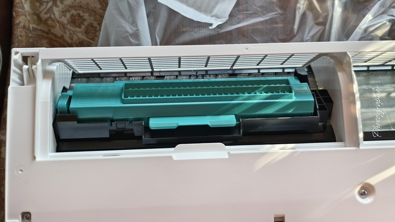 Относно вътрешното тяло...За мен, най голямата изненада беше плазмения фълтър който използваха моделите на триото едно време (визирам LDC серията). Разбира се, формата и размера са различни, но това вече си е едно добро решение относно пречистване на въздуха. Радвам се, че е върнато като хардуер, макар и в ограничени модели. Топлообменника е четириредов (което е много добре) и за машина 12000 BTU си е доста голям като размер. Модела има страхотни параметри и коефициенти (може да се видят където трябва, но ще ги напиша все пак)