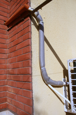 За монтажа - в общи линии доста добър монтаж. Подходиха с внимание, изслушаха ме какво и как искам. Малко трудно ги навих да сложат отделна изолация на двете тръби, но успях :). Тръбите мисля, че бяха от дебелостенните (1мм). Вакуумираха системата повече от 5 мин. Стойките обаче, са тънкостенни и доста кекави, дано изкарат годинки... ще ги следя, ако започнат да ръждясват по заварките, имам заварчик който мога да викна, и ще ги подсилим. Тази пвц-тръба, червената, е моя идея, но за нея не се дърпаха, сложиха я лесно. Сивата дунапренена изолация пак е мое дело, знам, че от слънцето ще прегори, но догодина лятото може да я обвия с тиксо, засега ми харесва така. Сега само ще скрия тръбния път вътре в стаята. А тръбния път пожелах да го пуснат ортогонално/отвесно (те искаха по диагонал) - за пътя след пвц-тръбата говоря, понеже ще правя отстрани на терасата дървена дограма със стъкло, и ще изглежда по-прилежно така.