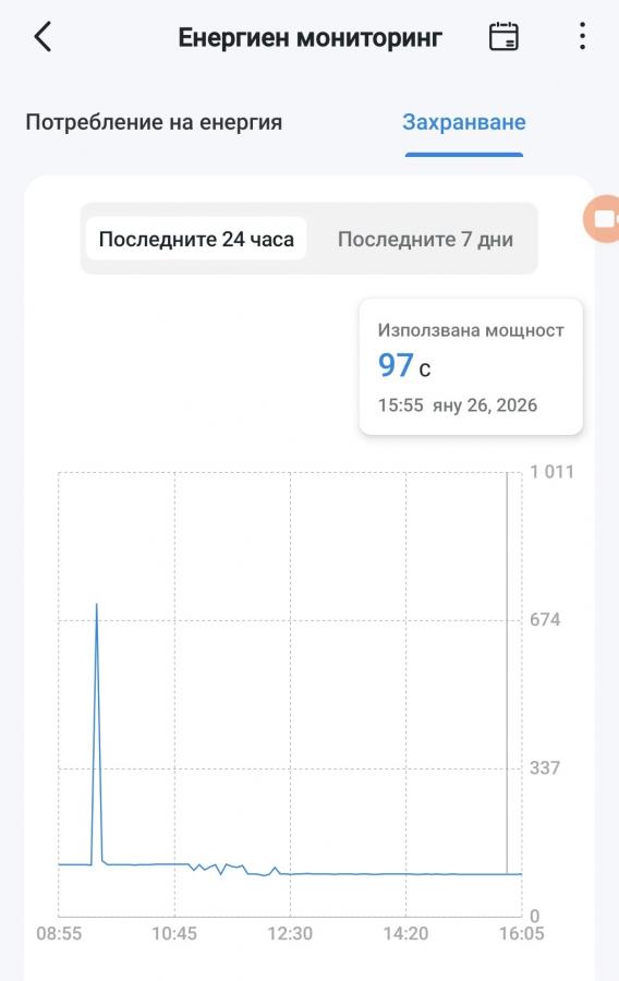 Midea 12 BreezeleSS MSFAAU-12HRFN8-1/ISFAAU-12HRFN8-0 Br с направената настройка 10 херца 4 часа работи непрекъснато с минимум от 97 вата на отопление. Нарочно зададох по ниско задание от 19 градуса на климатика за да видя до колко ще падне минимума му, в стаята се подържаше 21 градуса. Днес след обяд въшната температура се повиши до 14 градуса.