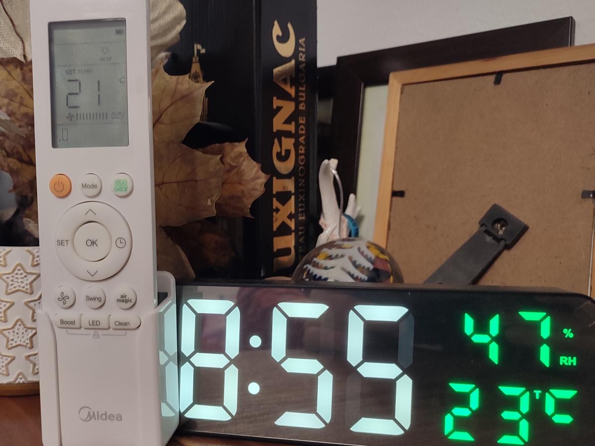 Xtreme Nordic-ът направи дефрост тази сутрин в 6,18. Температурата навън, според телефона ми е била 3 градуса над нулата. Слижил съм го на 21 градуса топлене, автоматичен вентилатор. Влажността на въздуха в стаята варира 52-60%.