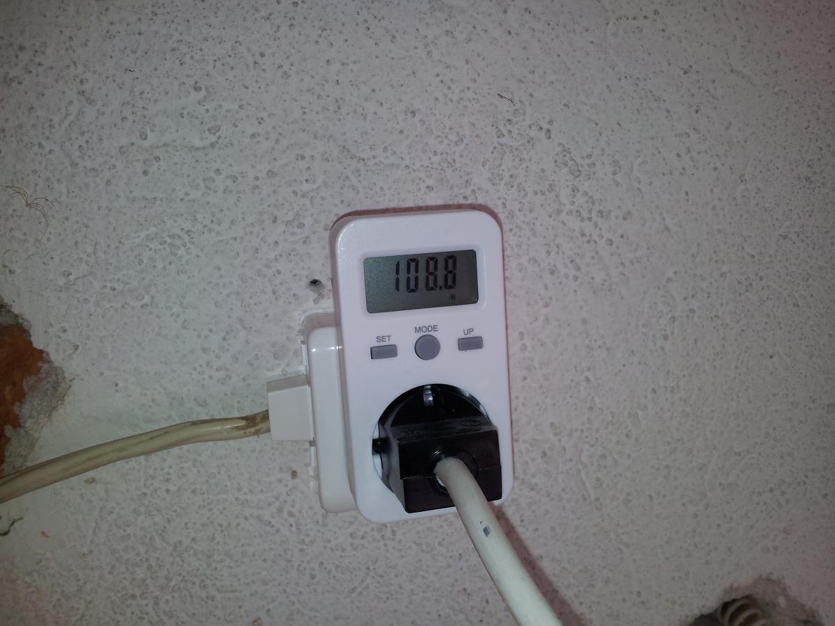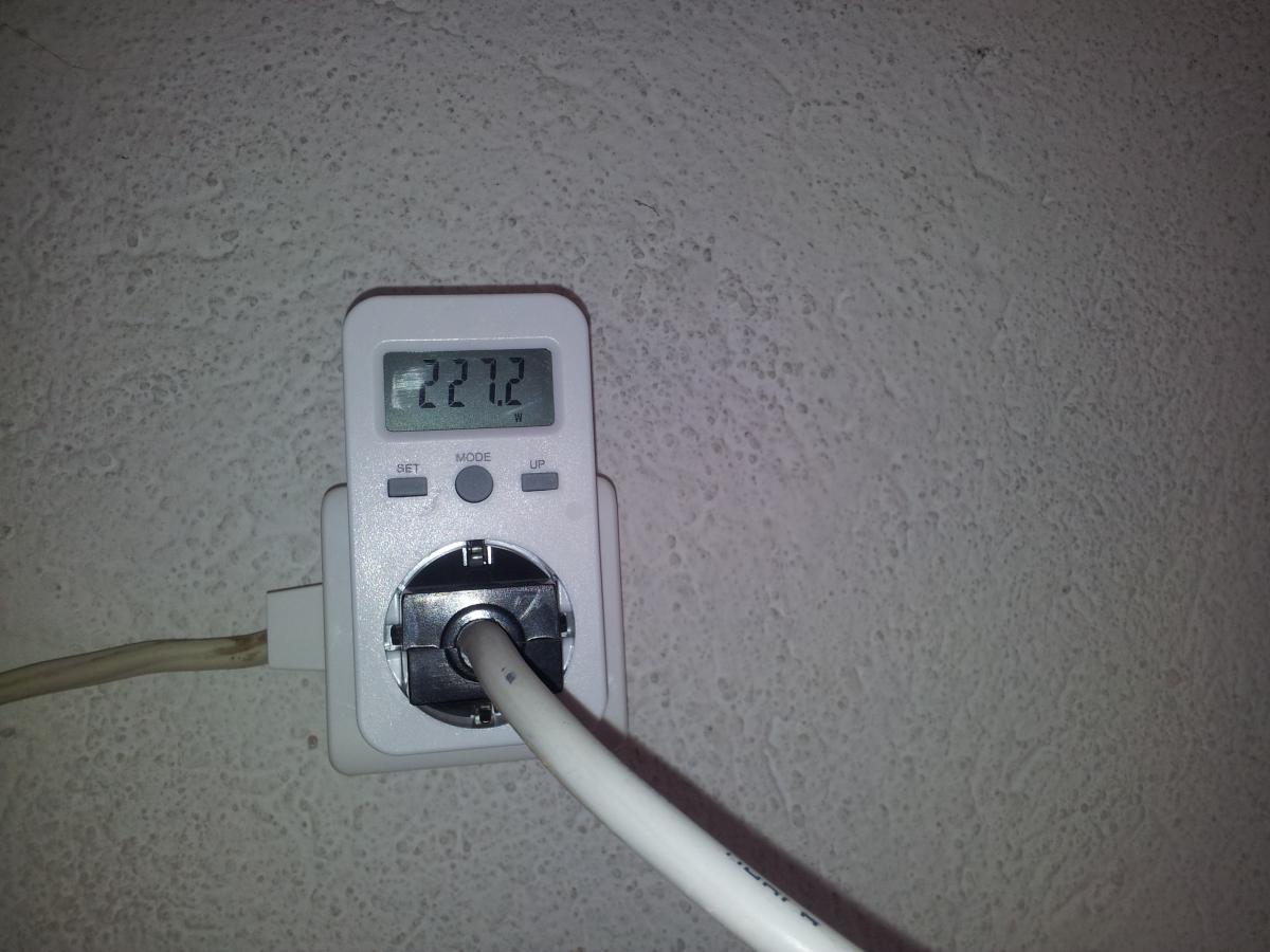 23 зададени ,термометара показа 22 горе долу в др. край на хола е . ето какво показва като консумация.Отвън е 7 градуса.Това Ват метърче е на терасата дават му до 5 градуса да бачка дано не стане някав фал.