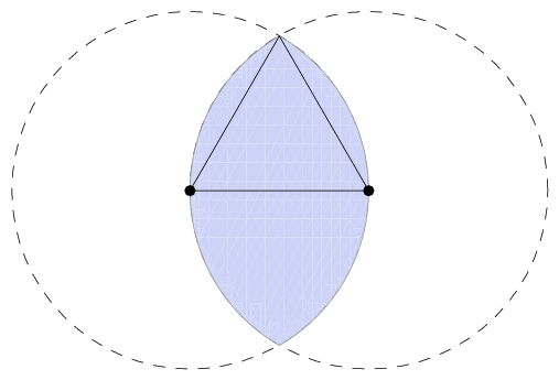 И най-вероятно ще може да се направи още оптимизация: като пресечем не 2, а 3 окръжности.