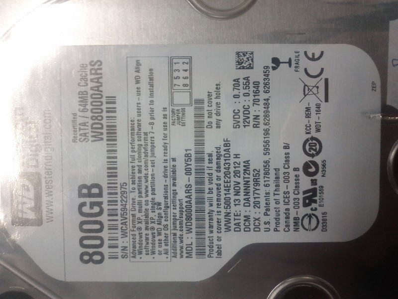 Продавам HDD Western Digital 800 GB. Диска е чисто нов, неразопакован и е в гаранция до 21.09.2013 г. Цена 105 лв. Намирам се в Бургас.