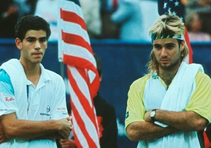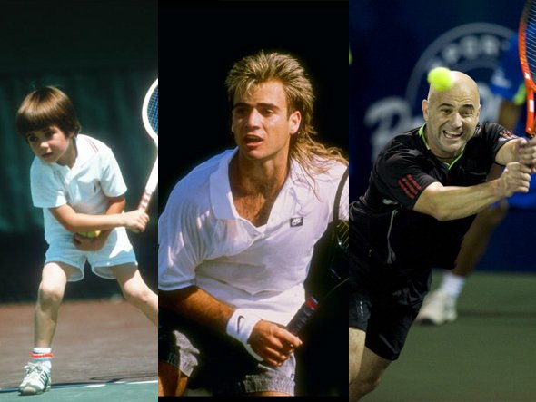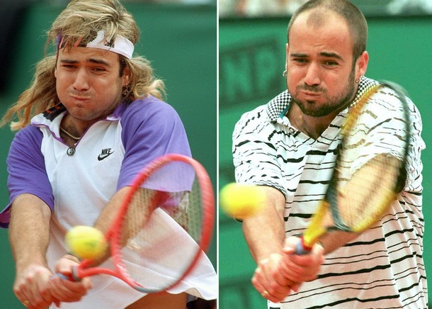 Това, което виждам е опит за имитация на Андре Агаси от най-ранните му години. Руса кичара с лента, къси дънки, ризки с копчета до долу и т.н. Тогава имаше една голяма дилема - дали Агаси ще е първия, който ще наруши каноните и ще излезе с "цветен" екип на Уимбълдън.