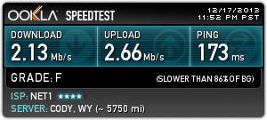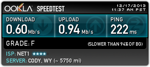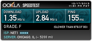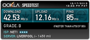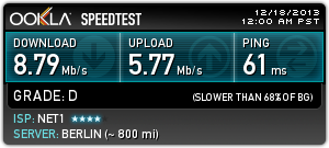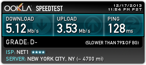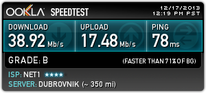 Това е на 45 мбпс тарифа от нет1.От 5 дни съм абонат, всеки ден има прекъсвания, по няколко пъти.Всеки ден.И проблема не е в мрежата в блока ми, а по "глобален" тъй като до 3-ия хоп съм супер и после увисват работите.Имал съм няколко доставчика, в различни градове на страната.Този беше най-хваления доставчик от други абонати преди да стана абонат и услугата му се оказа най-боклук.Писах на съпорта.Питаха ме на чие име е договора и дотам.После отговор нямаше.Мхмммм