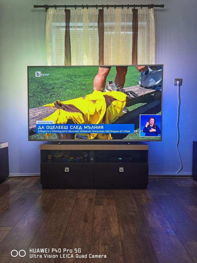 Телевизора е страхотен, наистина 70 инча е мнооого по добре от 50 а Амбилайта направо разбива, понеже стаята ми е 6 на 4 метра осветлението е направено на 2 половини и може да се гаси по отделно, като изгася половината към тв-то и пусна Амбилайта става супер. Малко е кофти че отзад има прозорец, но няма идеален свят. Още веднъж благодаря на всички за съвета!