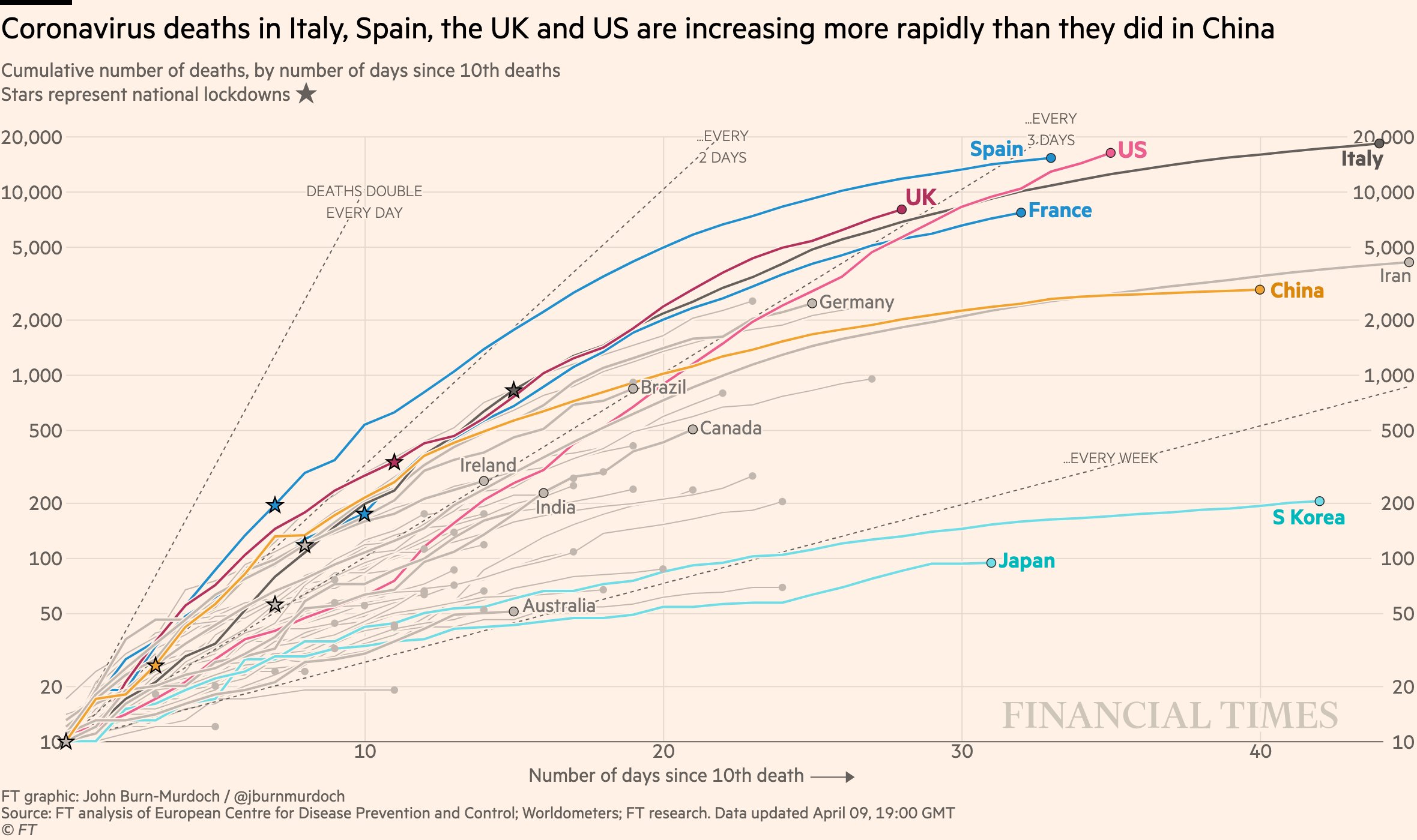 • Смъртният брой на САЩ все още нараства. Вчера казах, че може да бъде най-високата в света в рамките на ~ 5 дни, сега изглежда повече като 2-3 дни