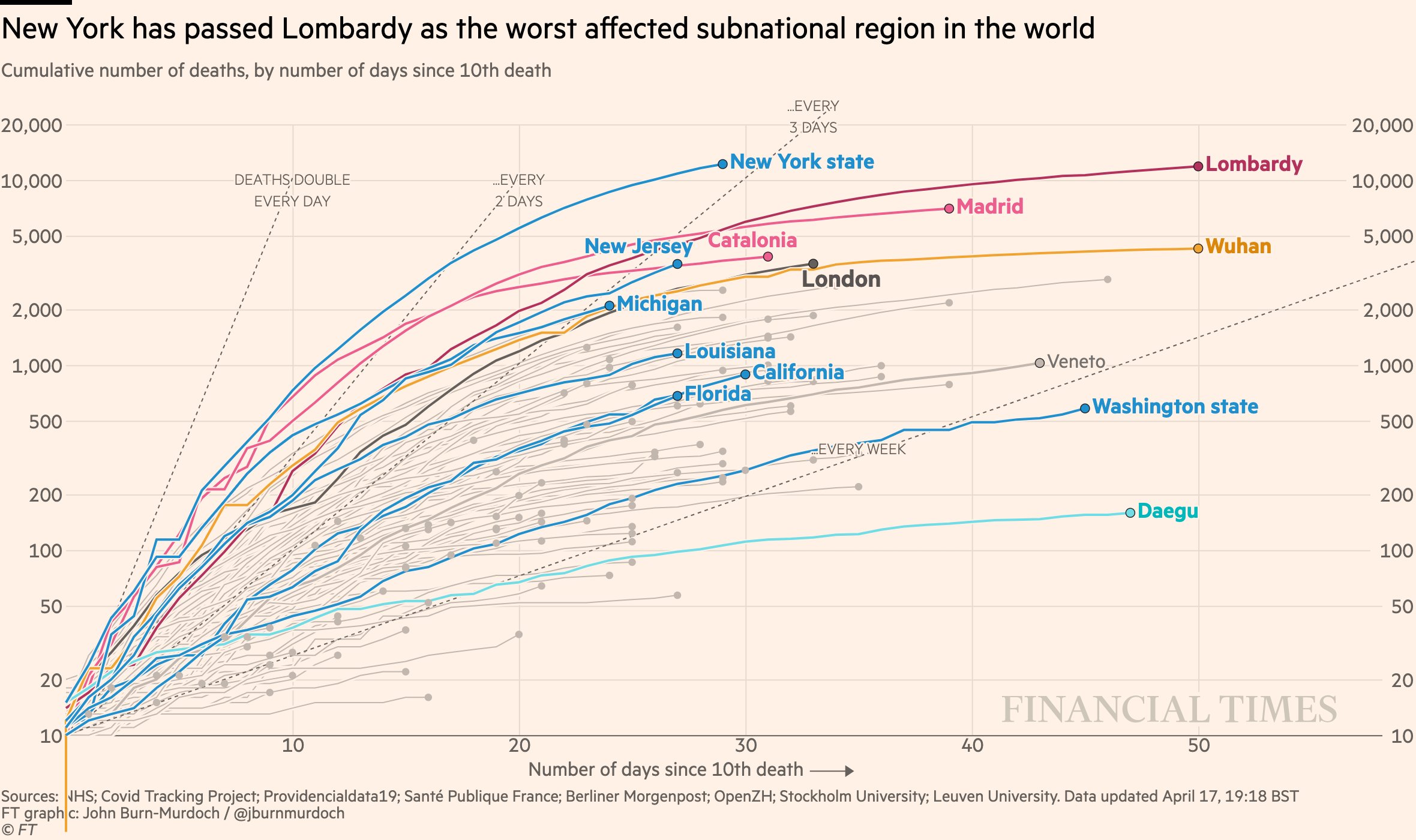 • Скъсване на кривата в Ню Йорк, но е преминал Ломбардия за най-високата смъртност на субнационалните в света