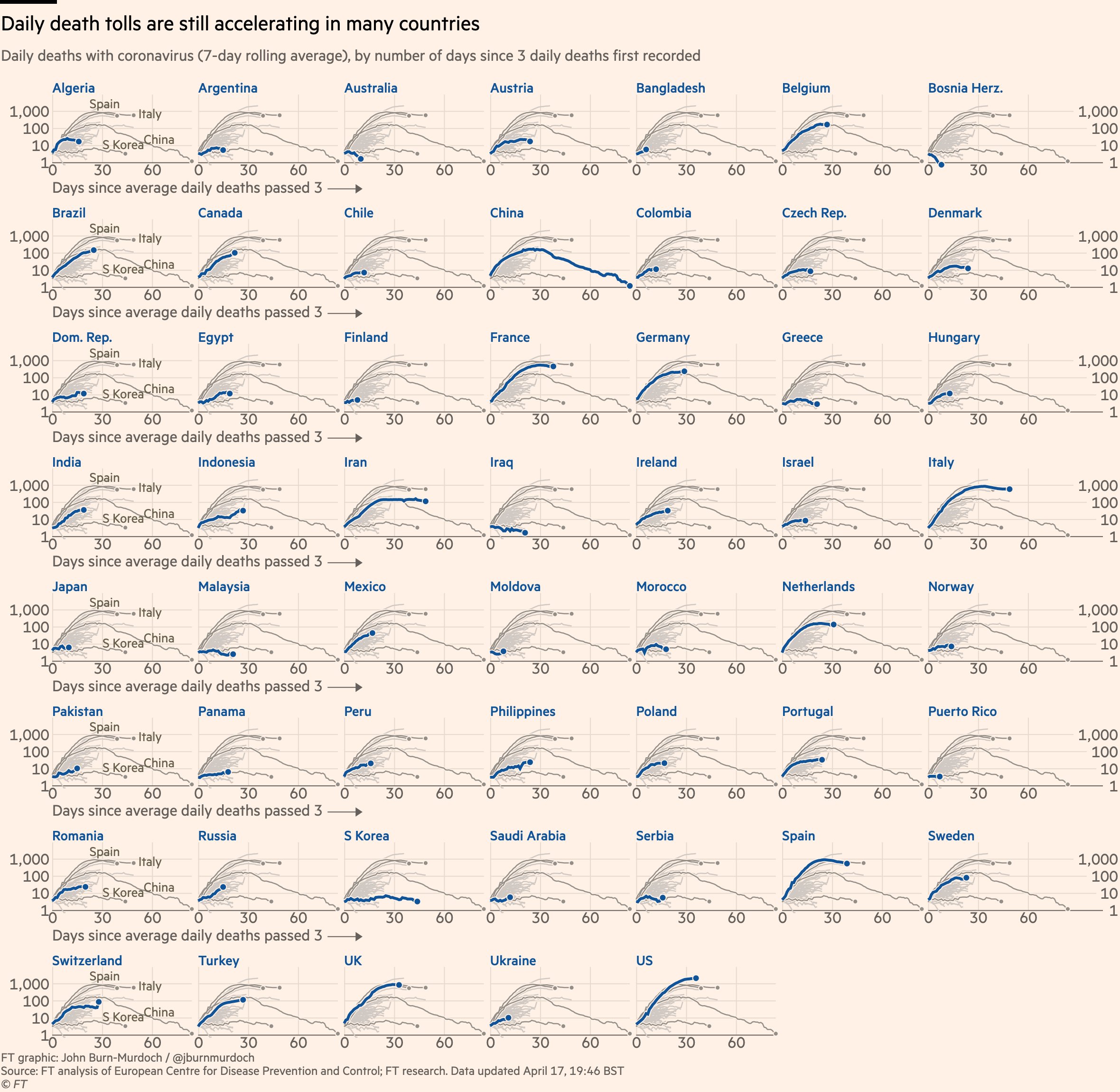 Малки множества за ежедневни нови смъртни случаи в държави: