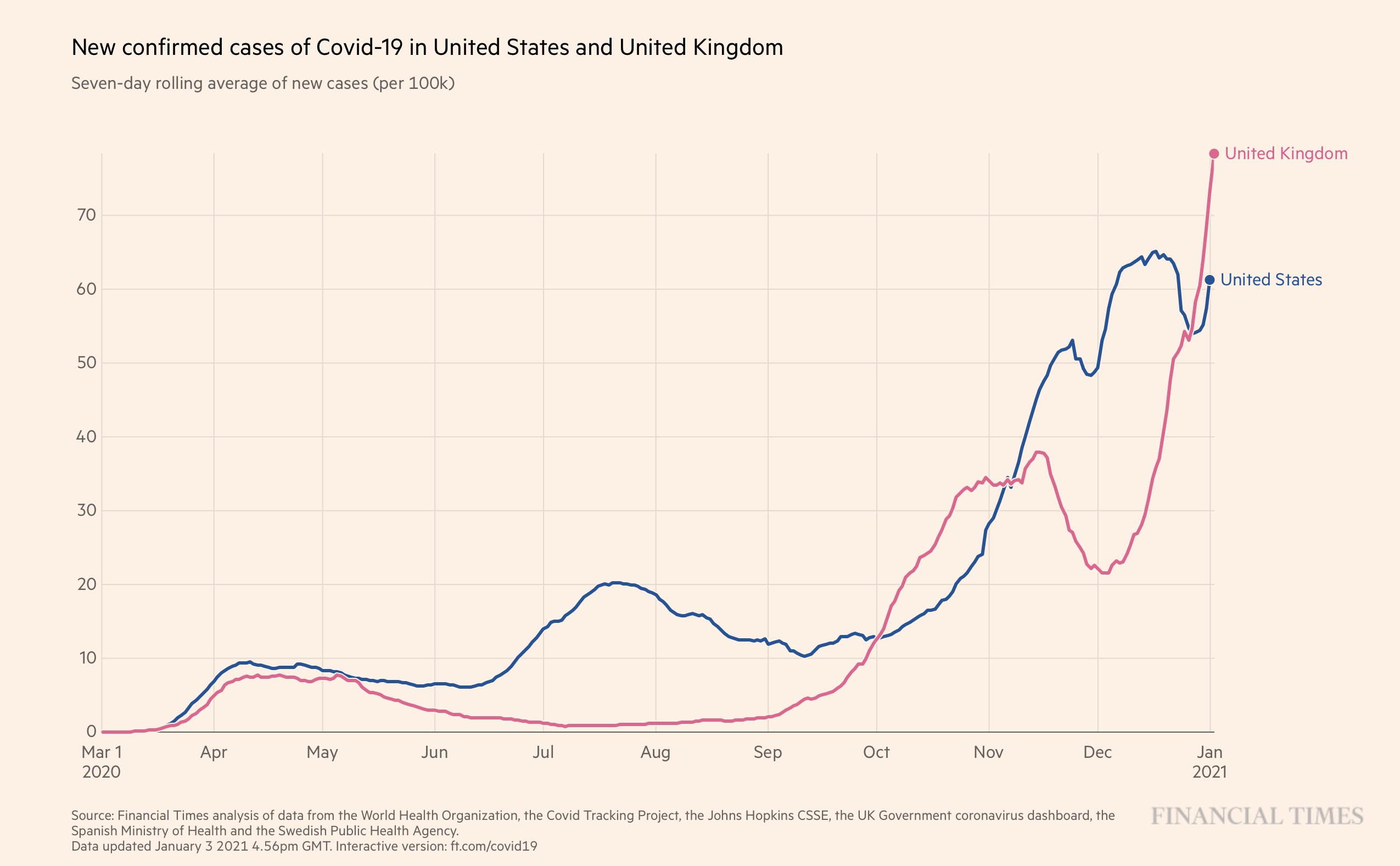 С новия, по-трансмисивен вариант, тази диаграма на ежедневните нови случаи на covid във Великобритания е ужасяваща. По принцип това е вертикална линия в този момент.