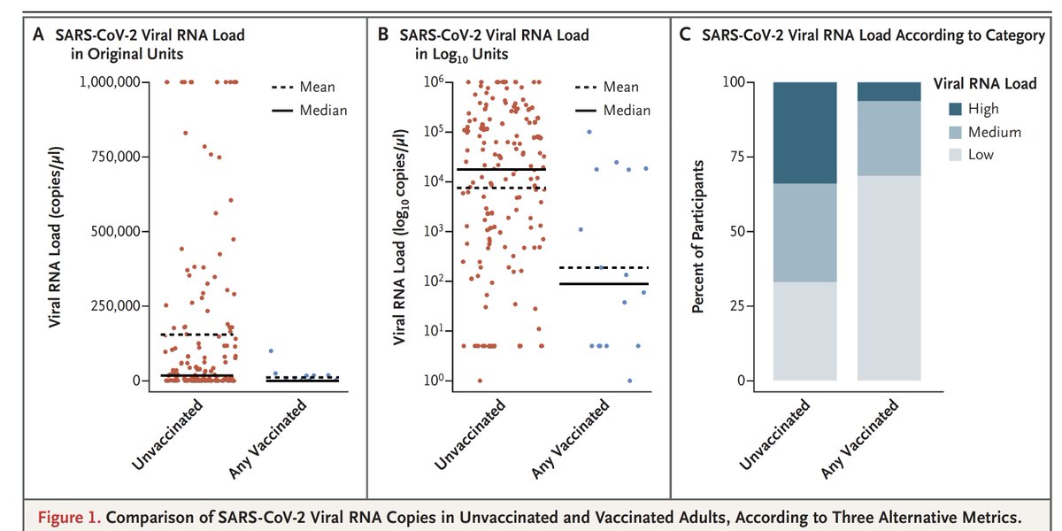 (преди Delta), показващ, по някой от 3 метода, значително намаляване на вирусното натоварване сред инфекциите при тези ваксинирани срещу неваксинирани