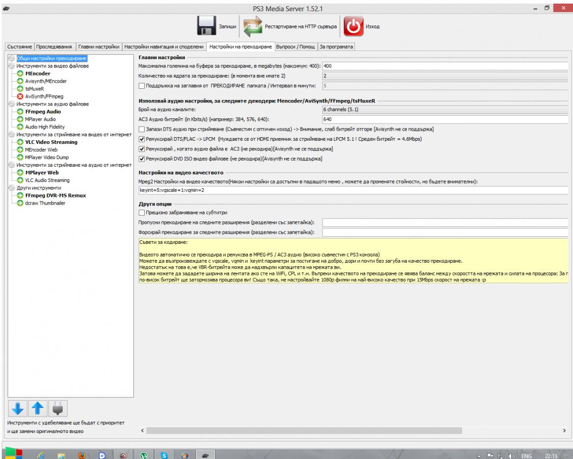 За да ти се появят субтитри на PS3, пускай филма от папка "декодиране". Слагането на отметката пуска филма по подразбиране без транскодиране.