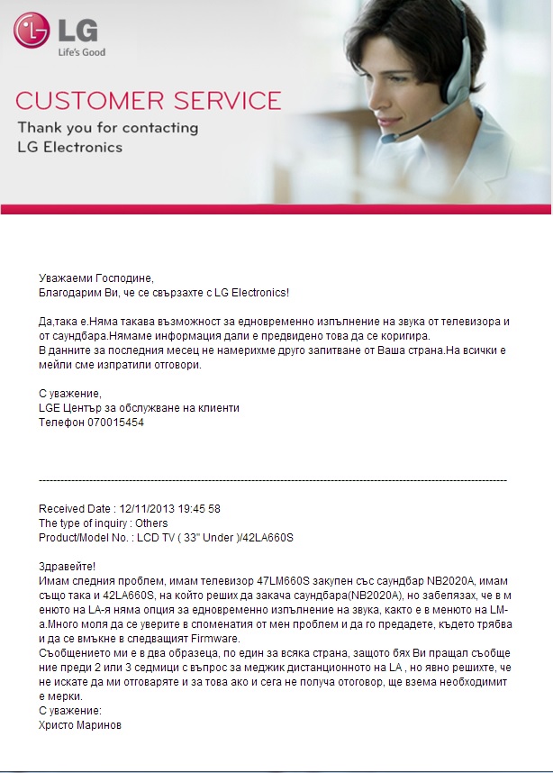 За проблема със едновременно вадене на звук от ТВ и саундбар, получих много странен имейл и не мога да се примиря с начина им на мислене!!!
