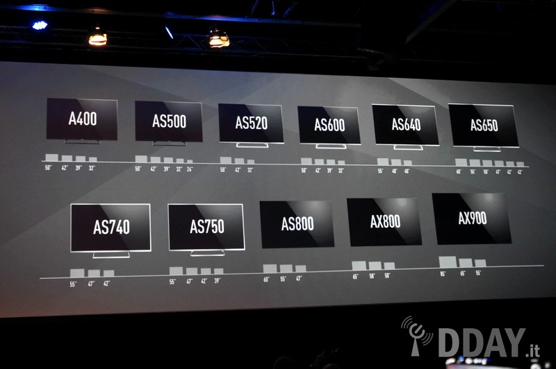 | Size (inches) | 55, 65, 85 | 50, 58, 65 | 47, 55, 60 | 42, 47, 55 | 32, 47, 50, 55, 60 | 32, 39, 50 | 32, 39*, 42, 50 | 32, 50 | 32, 39, 50 |