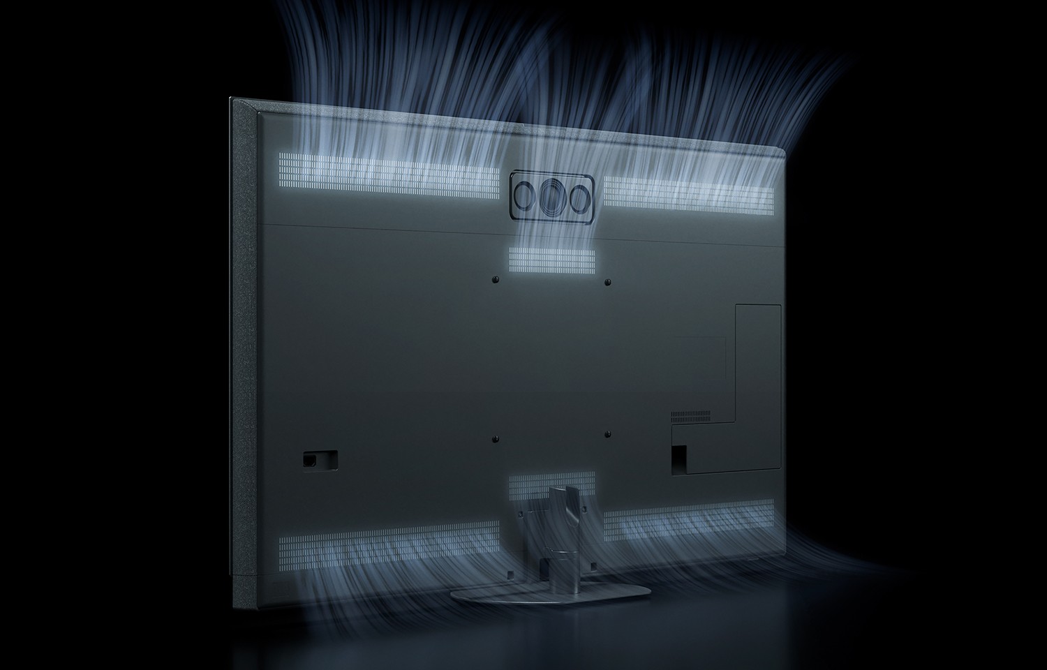 Топлината се разсейва ефективно, движейки се отдолу нагоре, което позволява на панела да поддържа високи пикове на яркост и изключителна производителност, без да се прави компромис с качеството или надеждността. Акира Язега от отдела за научноизследователска и развойна дейност в областта на телевизорите обясни как тази архитектура е подобрена чрез симулации с непрекъсната изчислителна флуидна динамика (CFD). Въпреки че Panasonic не прави изрични твърдения за пиковата яркост на Z95B, те рекламират 40% по-ефективното му боравене със светлината.