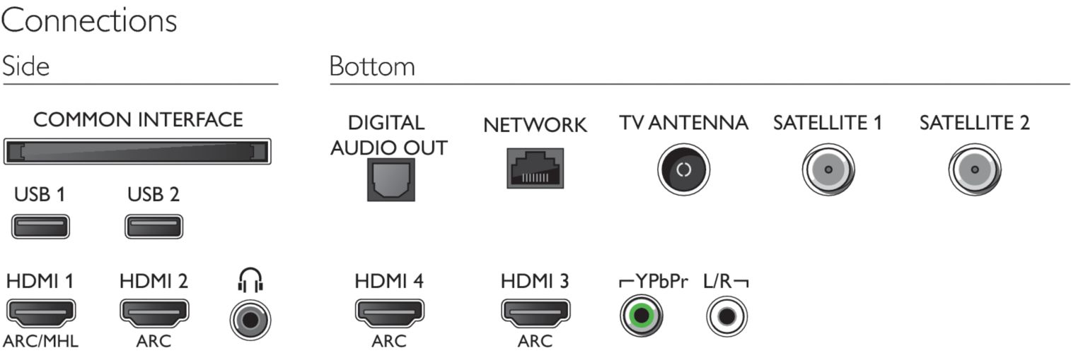 | Audio Return Channel | HDMI 2, 3, 4 | HDMI 2, 3, 4 | Yes | Yes | HDMI 1, 2 | HDMI 1, 2 | -- | HDMI 1, 2 | HDMI 1, 2, 3, 4 | HDMI 1, 2 | HDMI 1, 2 | HDMI 1, 2 | HDMI 2, 3 | HDMI 2, 3 | HDMI 2, 3 | -- | -- |