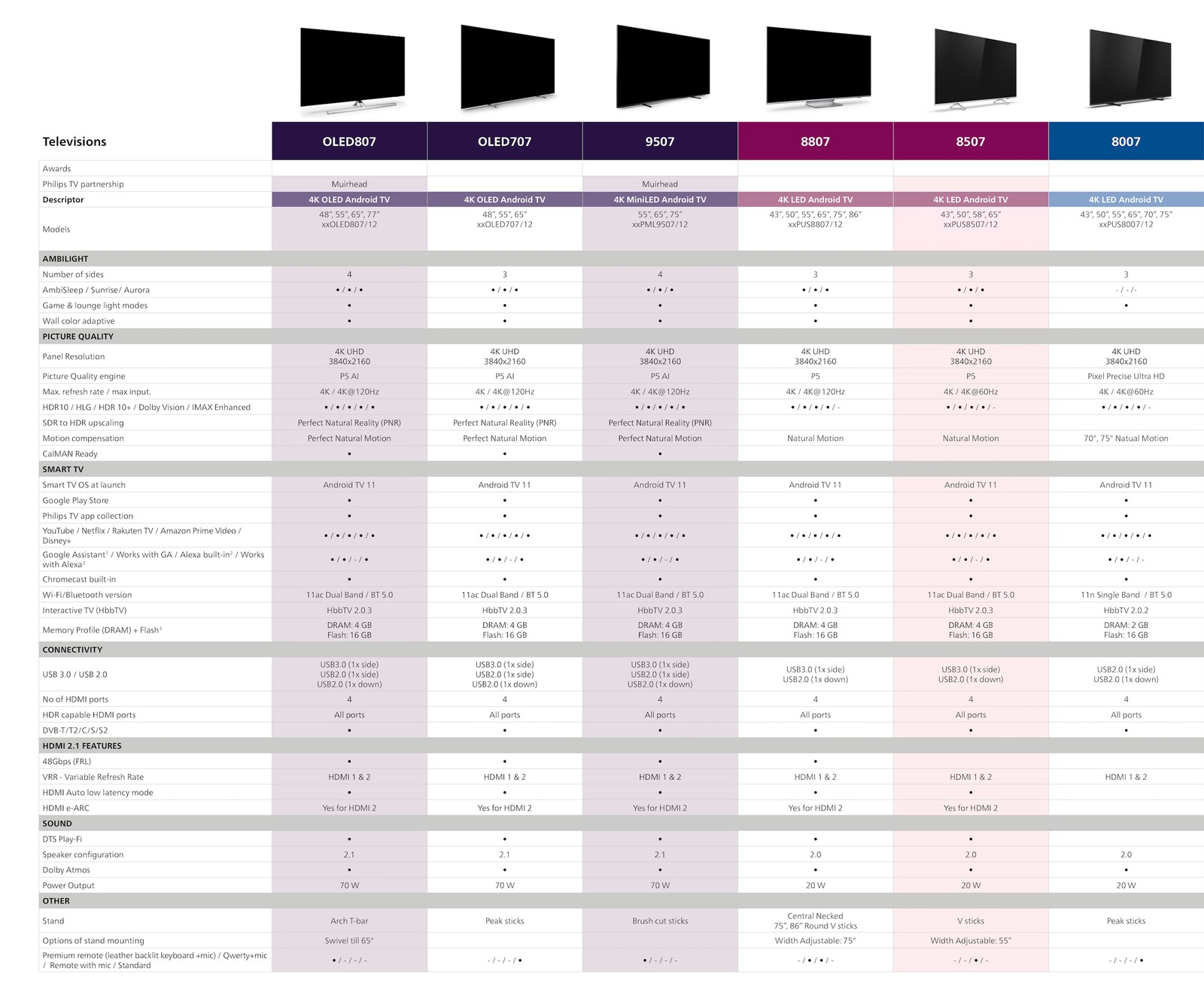 Серия PML9507 е единственият нов Mini LED телевизор през 2022 г. за Philips. Въпреки това гамата все още има два модела, миналогодишният Philips PML9636 остава в каталога още една година.