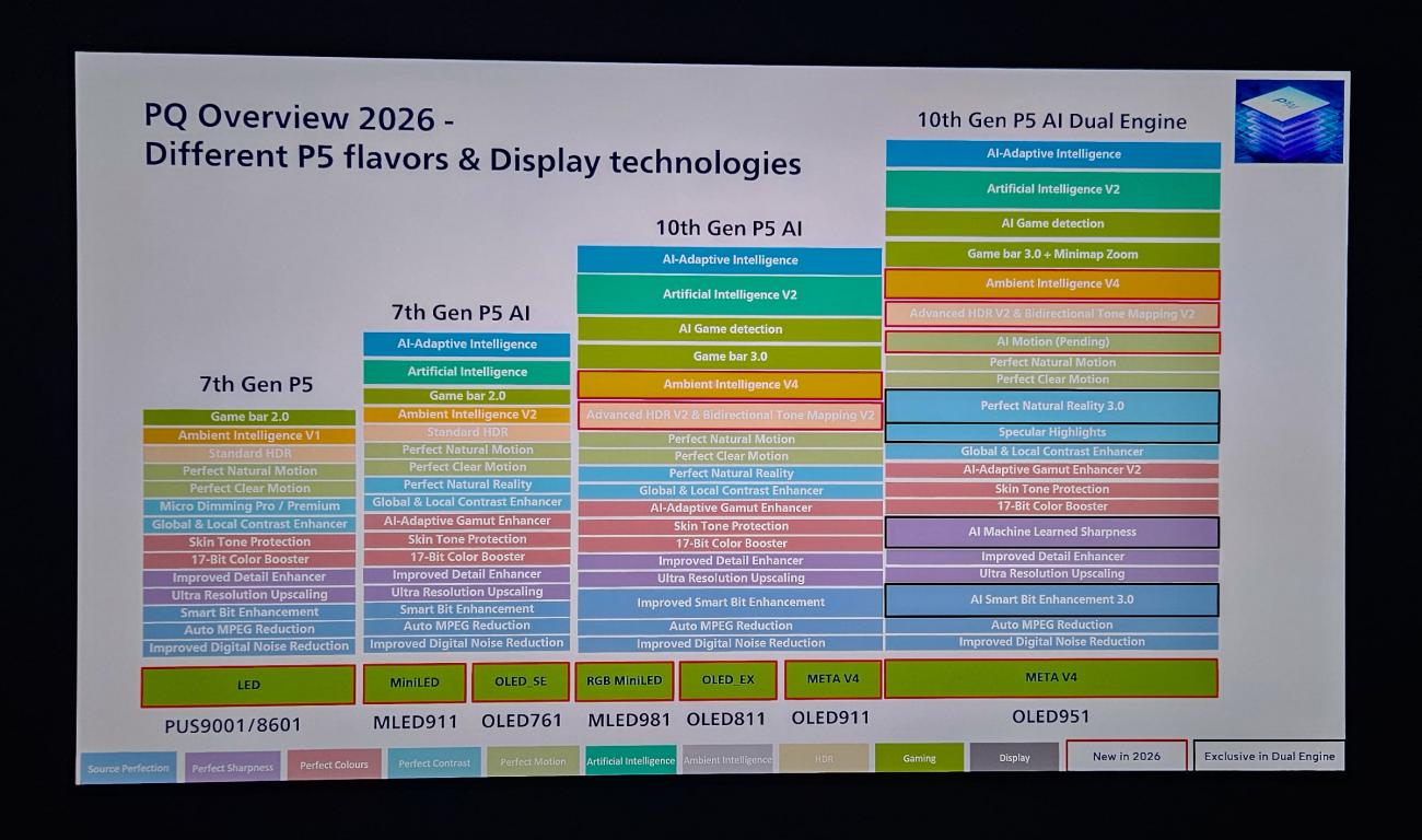 • 2017 г. – представен е процесорът P5 Perfect Picture Engine, който значително подобрява прецизността на съпоставяне на цветовете на светодиодите с изображението на екрана;