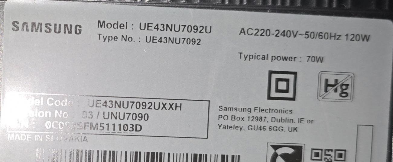 Модела е UE43NU7092.