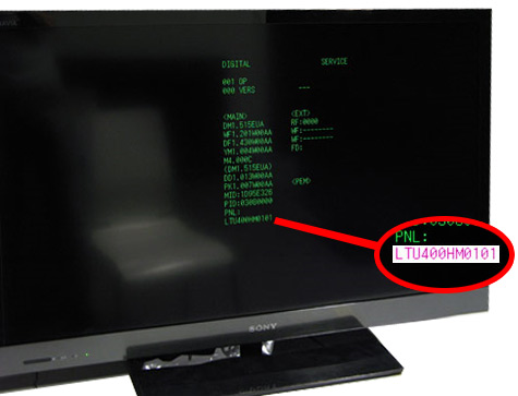 Има разлики в сервизното меню на модели от различни години и серии. Явно при теб трябва да се премине на друга страница, но не знам по кой способ става. Това, което си заградил е типа поставен панел - Samsung