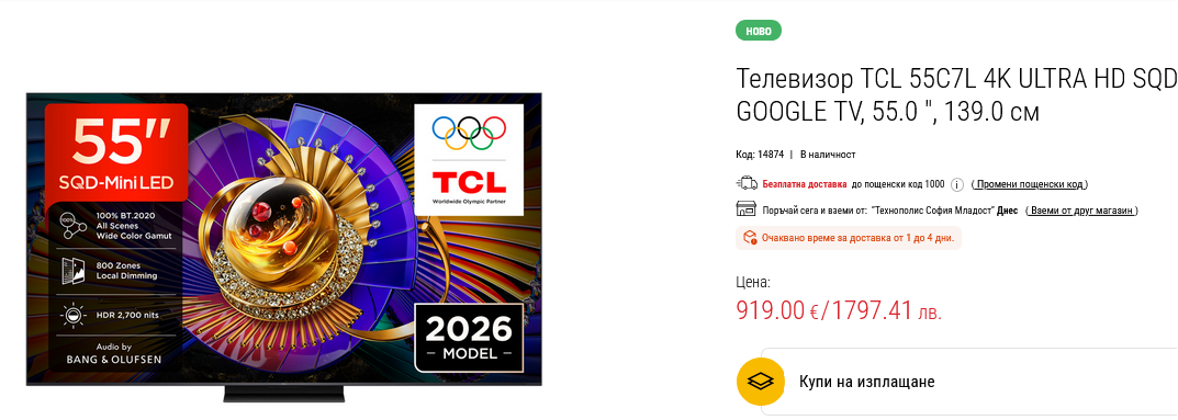 Отговор: TCL телевизори 2026 (инфо в първи пост), мнения, обсъждане, проблеми и решения